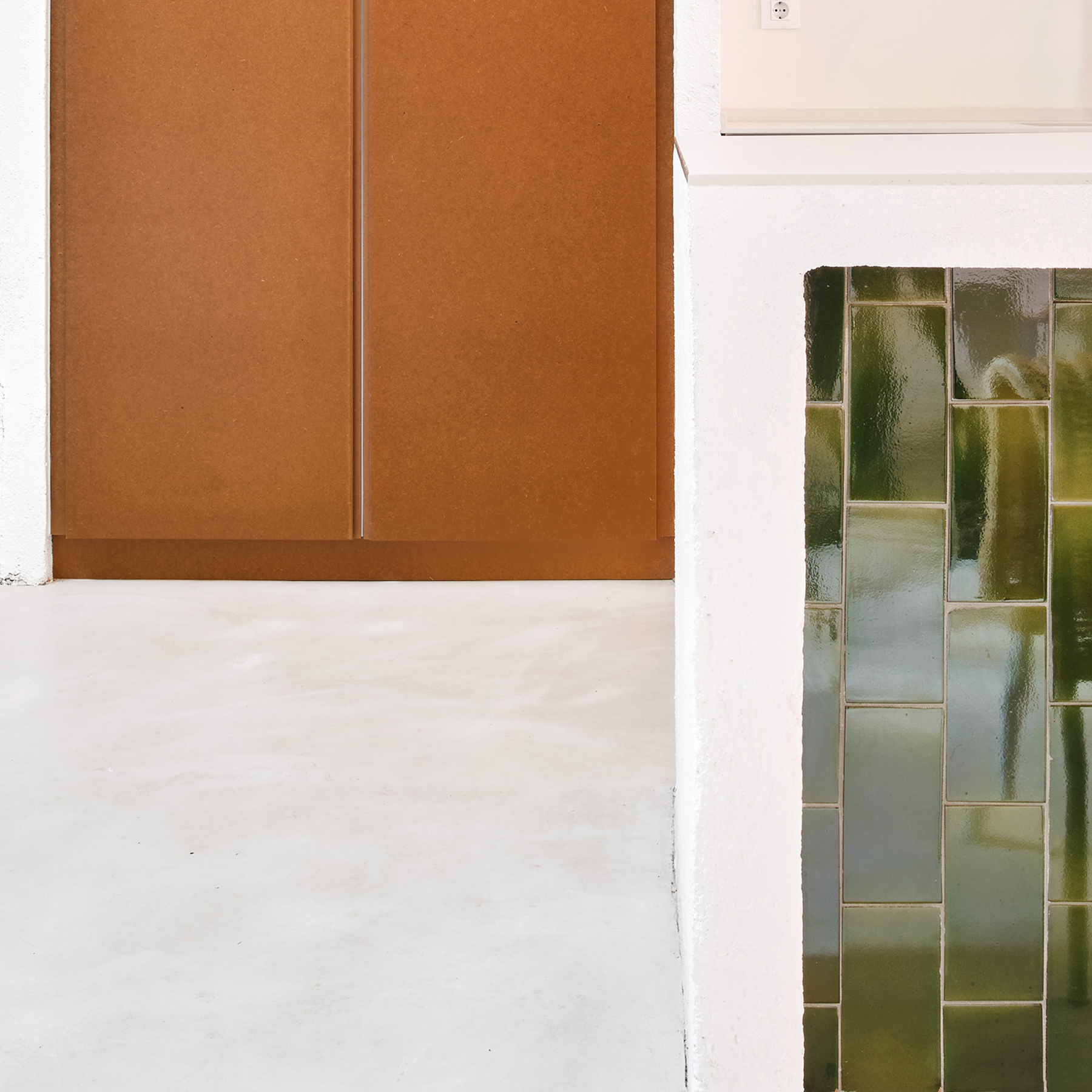CODEA Reconversion of a store and adjoining warehouse into a multi-purpose office space for a creative agency. A central core for service areas functions as a transition between two large open spaces.